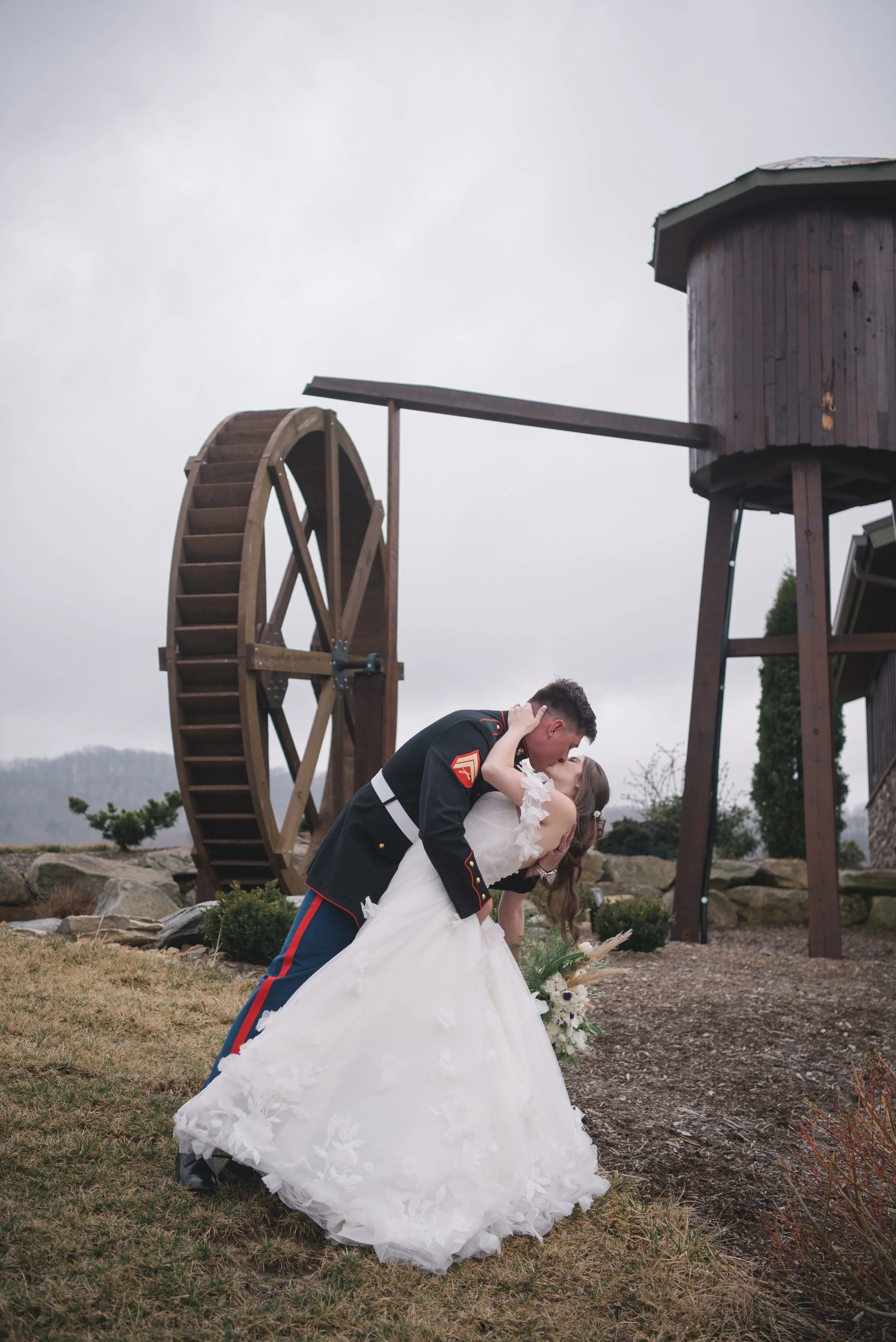 It didn’t stop there, they decided to pursue all the local businesses who were effected by Helene and found a way to include them in their wedding. Our welcome bags were filled with local goodies. We had blueberry jam and muffin mix provided by the Old Orchard Creek General Store in Lansing. Homemade soaps from Lux & Lye, as well as collaborated with our local print shop (GoPostal!) for our custom made koozies and personalized matchboxes.