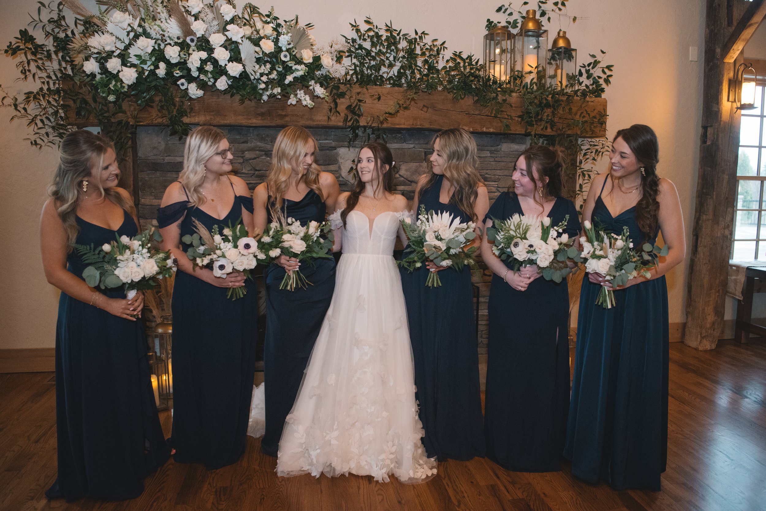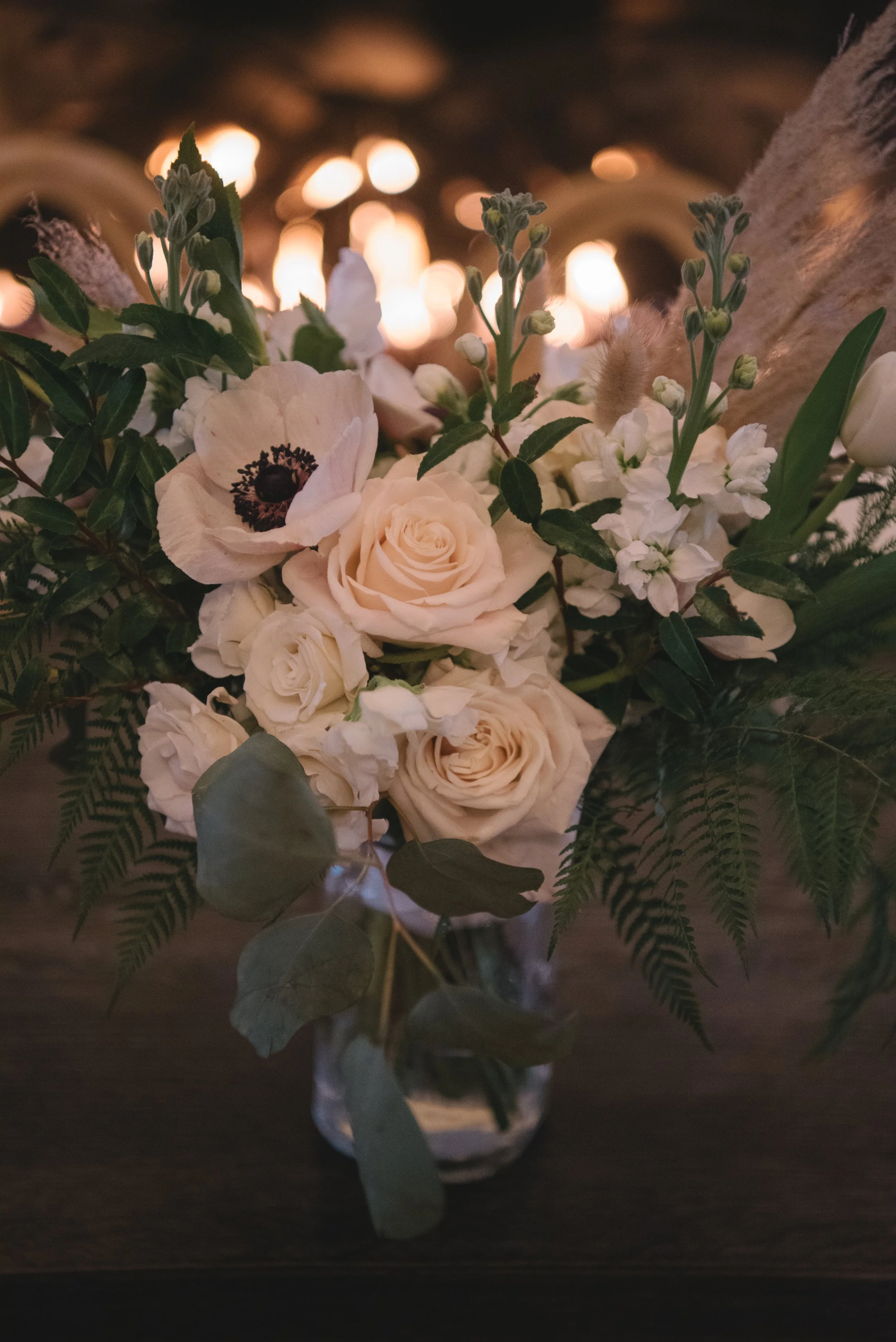 I couldn’t get over the incredible florals that Fuschia Moss had provided. The greenery strung up the wooden columns, the fireplace mantel arrangement, the dramatic centerpieces, it was all so incredibly beautiful and it came together seamlessly. DeAnn and Alexandra truly had an eye for design and it was so much fun working alongside them to see it all come together from start to finish.