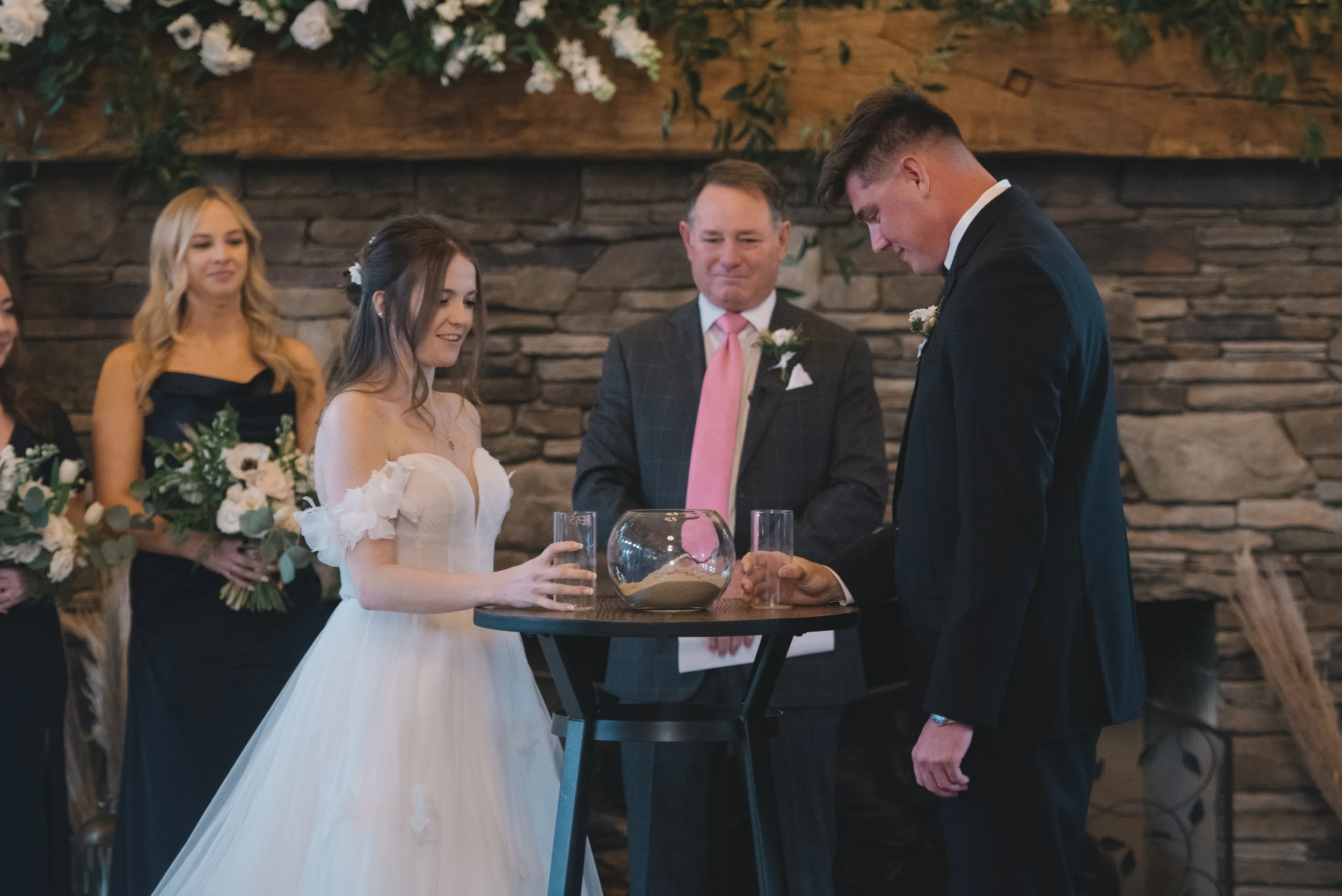 There were so many little details that represented Alexandra and Gavin’s relationship so well. One of my favorite aspects about the wedding service was the sand pouring ceremony, where they brought sand from the beaches of where they grew up and poured it into a vase.