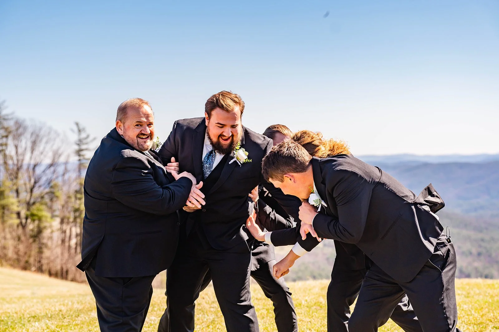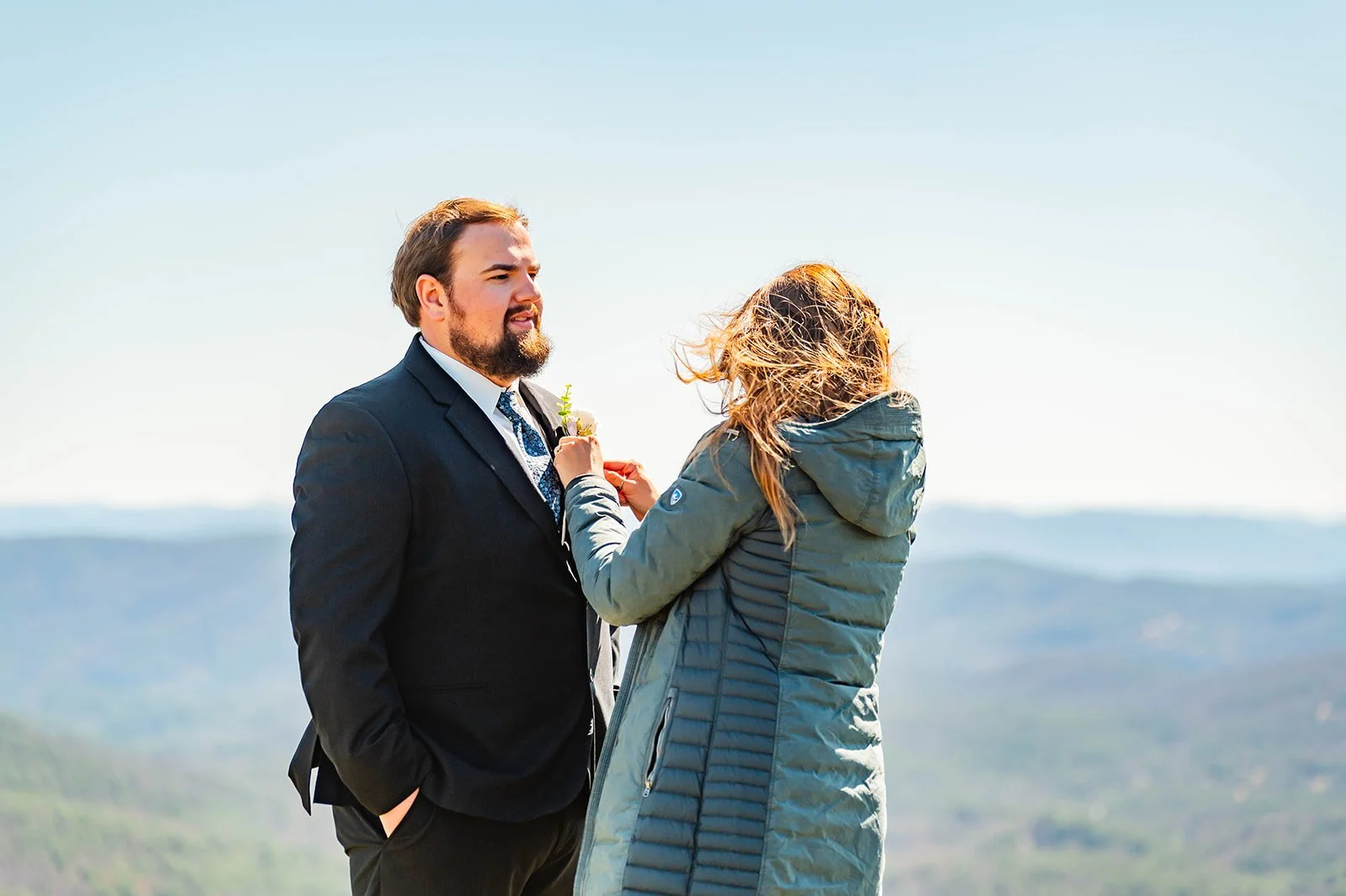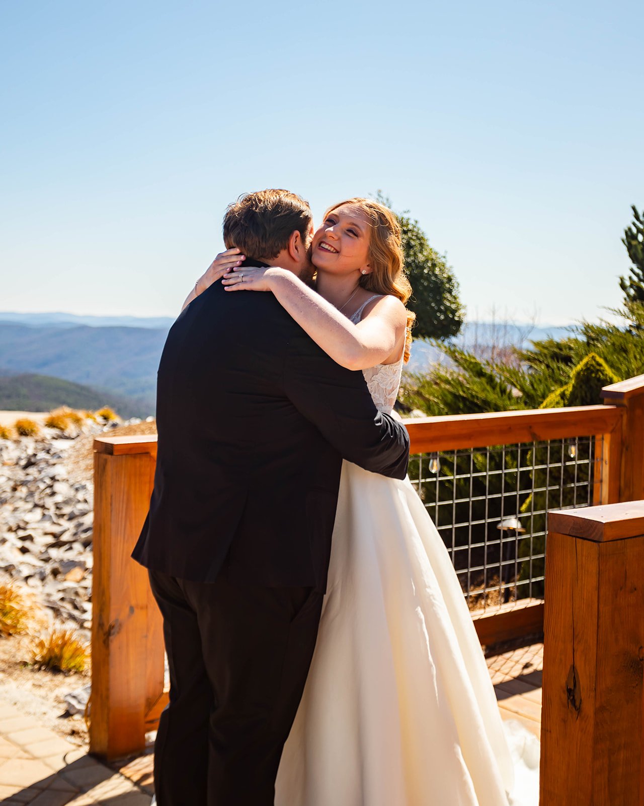We were all slightly concerned about the weather on the morning of their big day. Spring time can be so unpredictable in the Blue Ridge Mountains. It could rain, snow, storm, hail, but the wind was our main worry. The weather at the wedding Sky Retreat had hosted the day before nearly blew everyone off the mountain, it was that bad. But we scored the most beautiful spring day. Sunny, no wind, 65 degrees, it couldn’t have been any better.