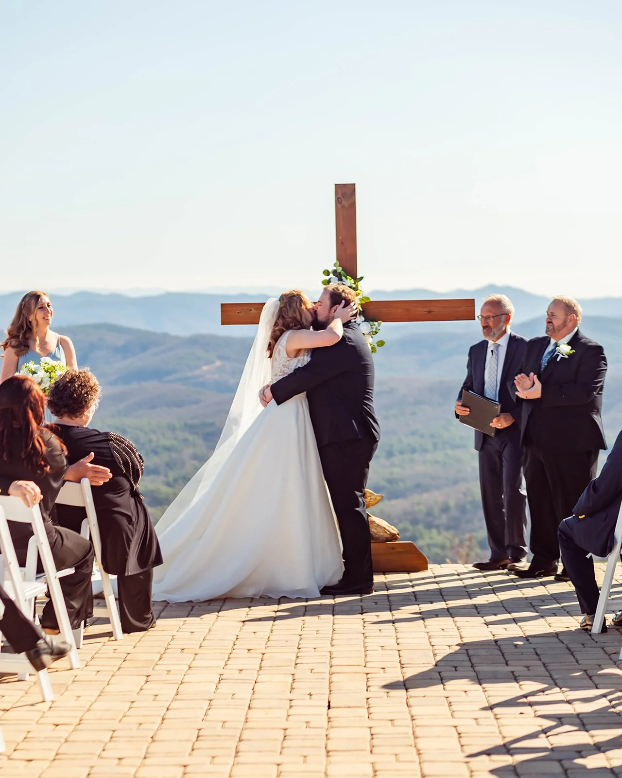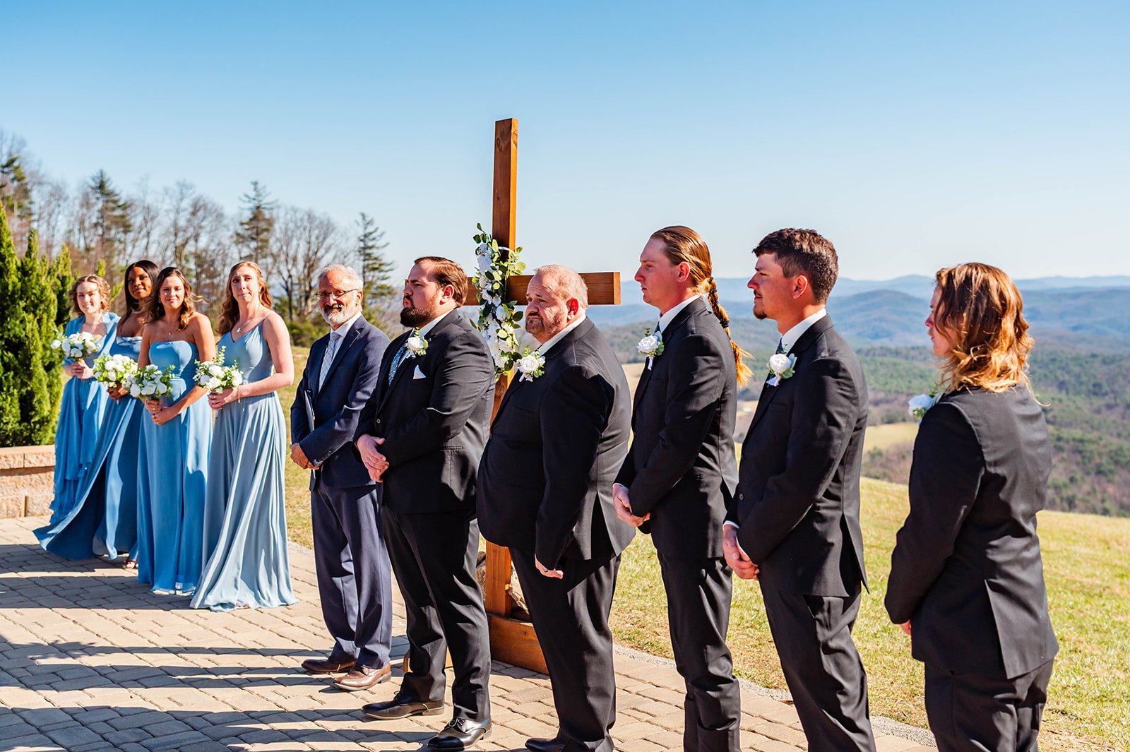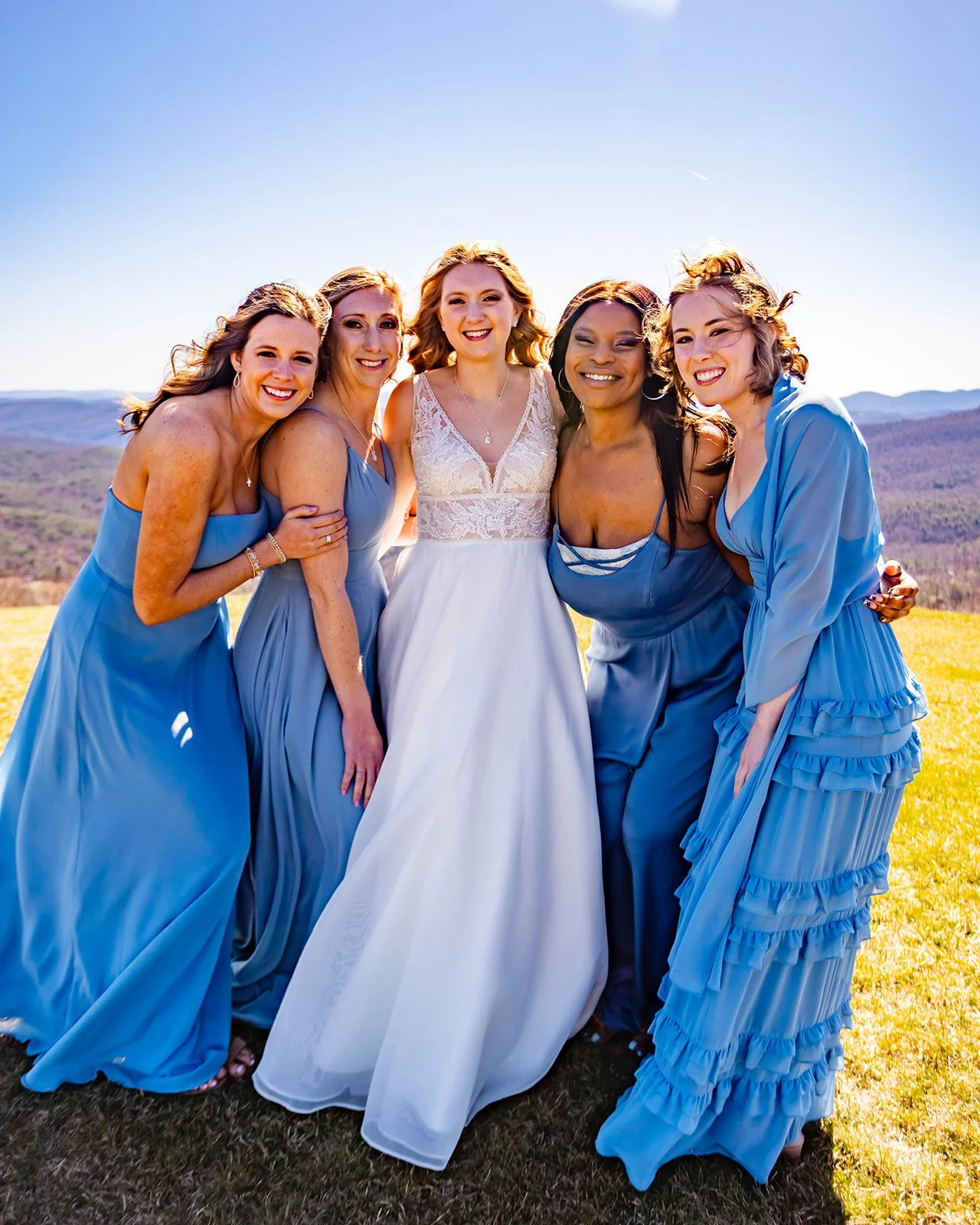 The wind held off for the entirety of the wedding ceremony (thank GOD!). The backdrop was perfect, and so was their service. It was absolutely stunning and I couldn’t get over how amazing the bridesmaids dresses blended in with the blue ridge mountains in the background.