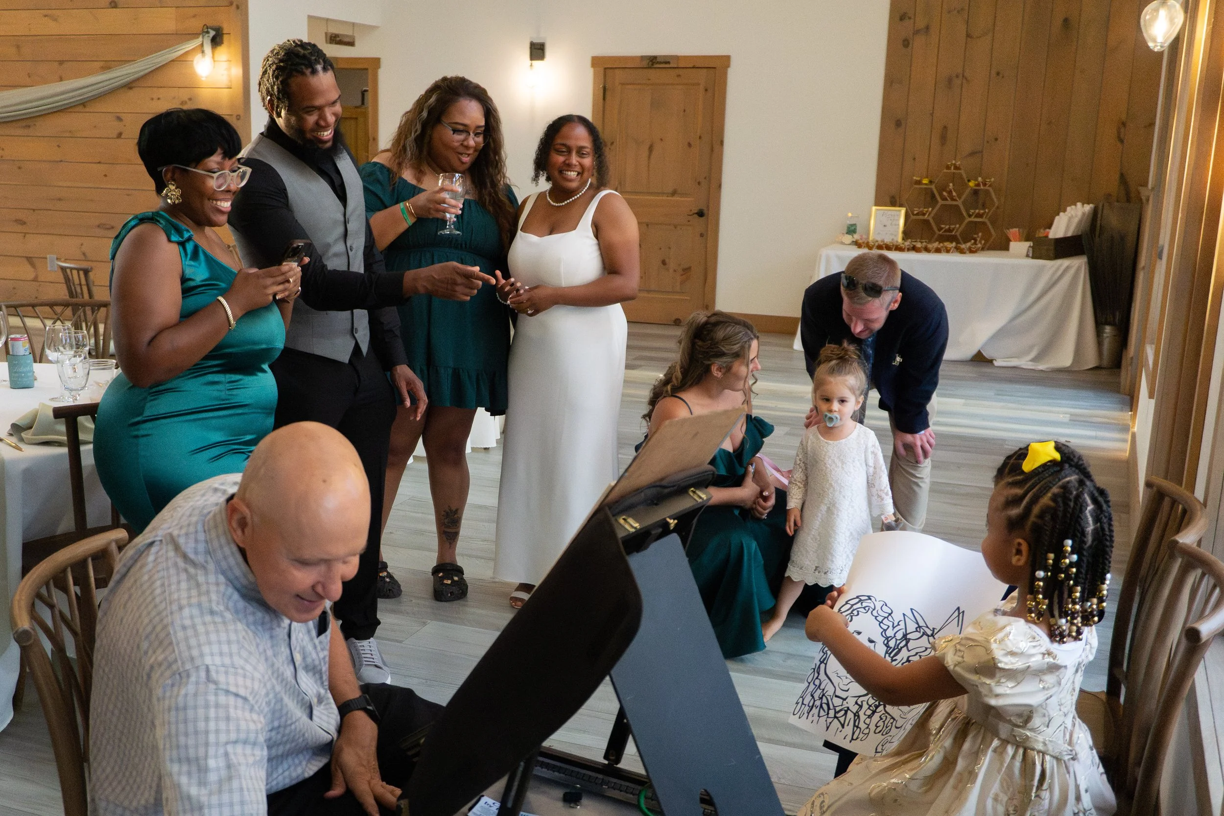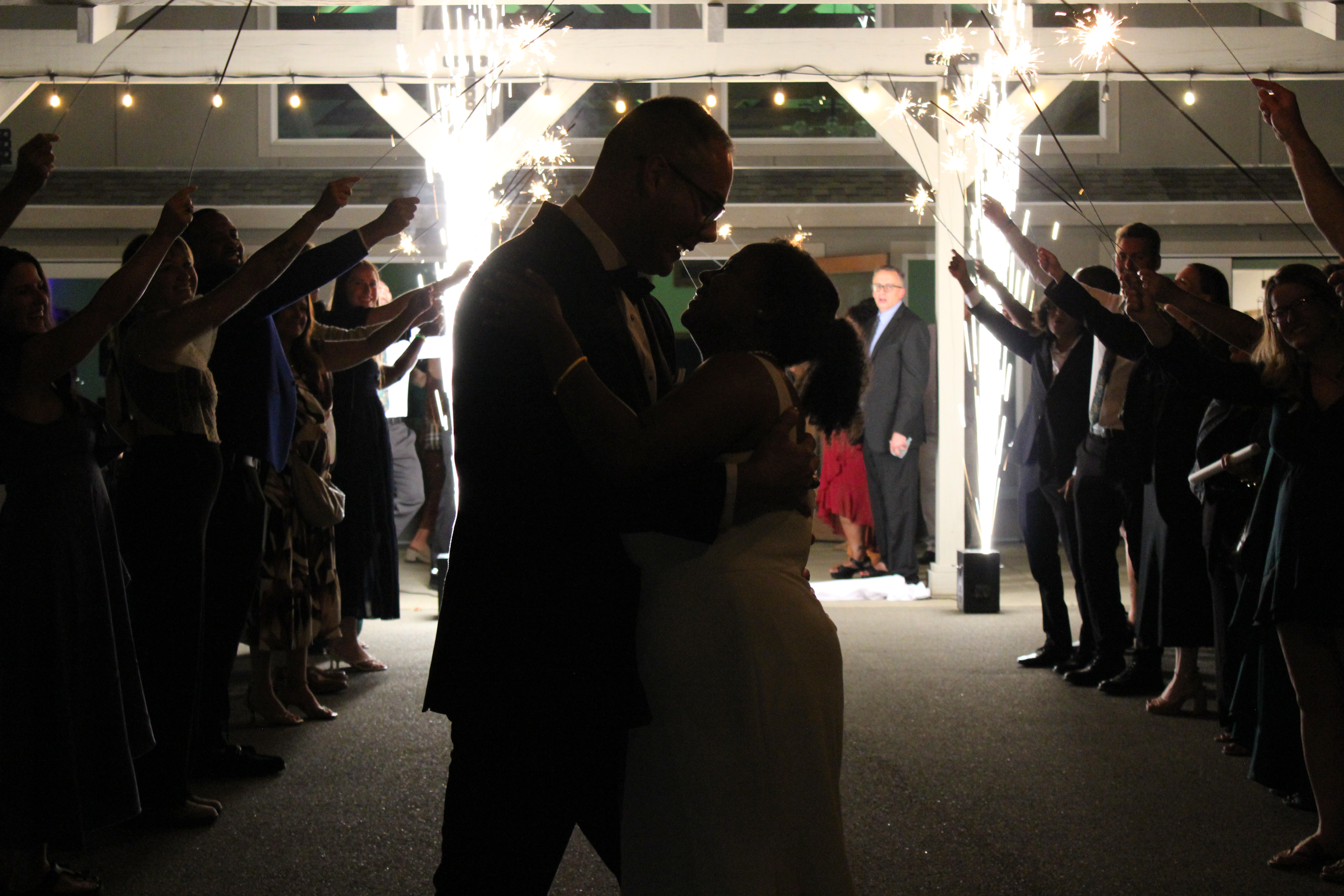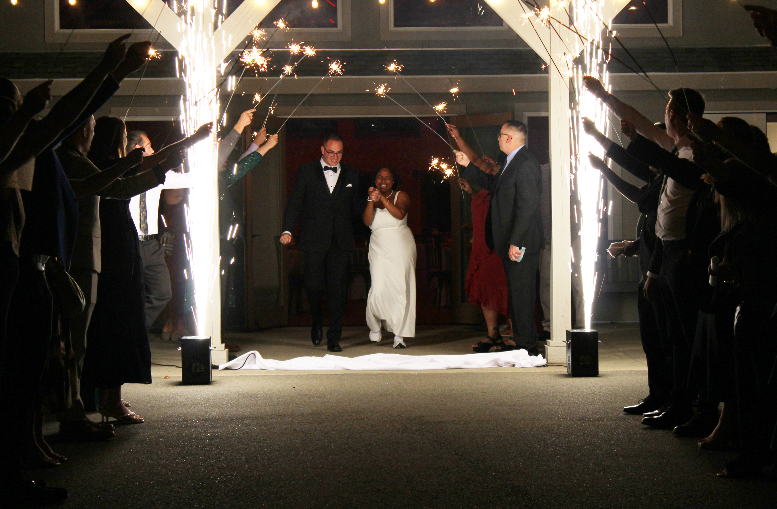A lot of their wedding was DIY meaning that the bride and groom did a lot of homework in the months leading up to their big day. Dar’Asia hand dyed all the wood flowers and arranged her bouquet, boutineers, and accent pieces. John corked bottles and bottles of his homemade wine which they provided for their guests to enjoy at their wedding. They had a couple of friends who were very handy with a camera do all the photography. And they had friends and family volunteer to put together all the charcuterie cups for cocktail hour.