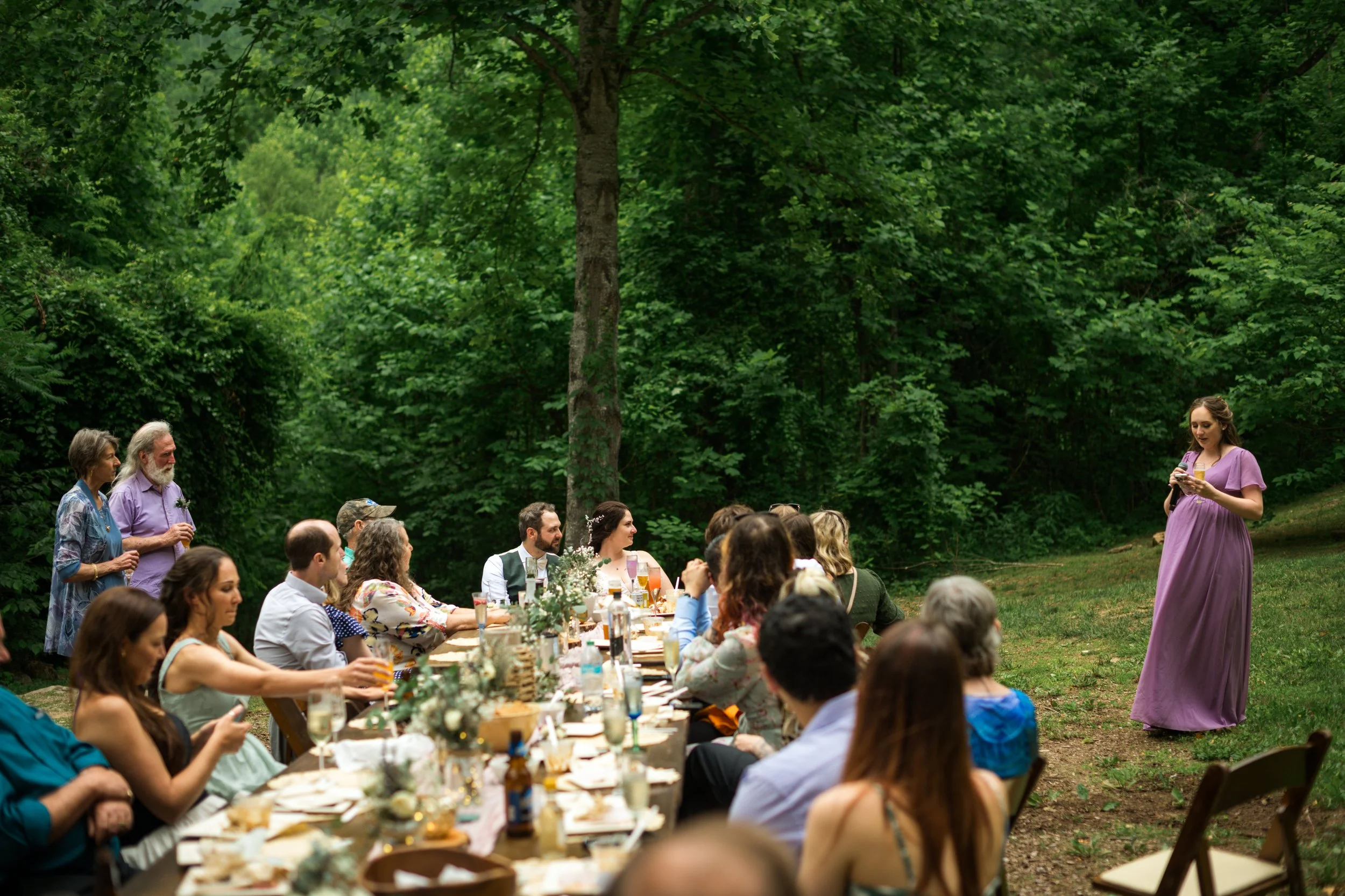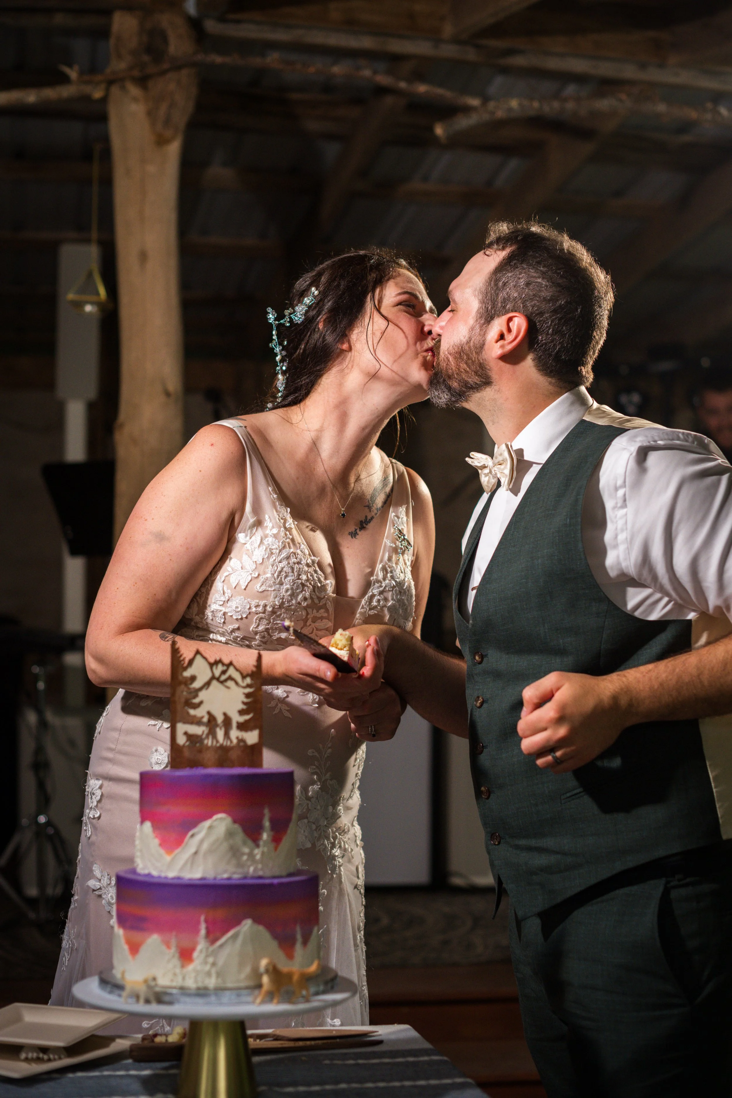 After the ceremony, I had created several charcuterie trays for cocktail hour while Hillary’s Dad served up specialty cocktails. One in honor of Hillary, Jacob, Leo, and Getty. They were such a hit! And then as we transitioned to dinner, Chef Andreas, a private chef in the Asheville area, came out to share a few words of what he had prepared for us. The food was DEVINE to say the least. And then it was onto the cake cutting (Old Europe Pastries baked one of the most beautiful cakes I had ever seen) and live entertainment was provided by Mountain Peak Sounds. Hillary and Jacob had warned me that their guests may not be the dancing type…well that was a lie. Matthew and his band had everyone busting a move on the dancefloor. It definitely helped that everyone has that magical “Leo juice” flowing through their veins all while it was torrential downpouring. It forced everyone into the “party barn” and they truly had the best time as they danced the night away. It couldn’t have been a better day.