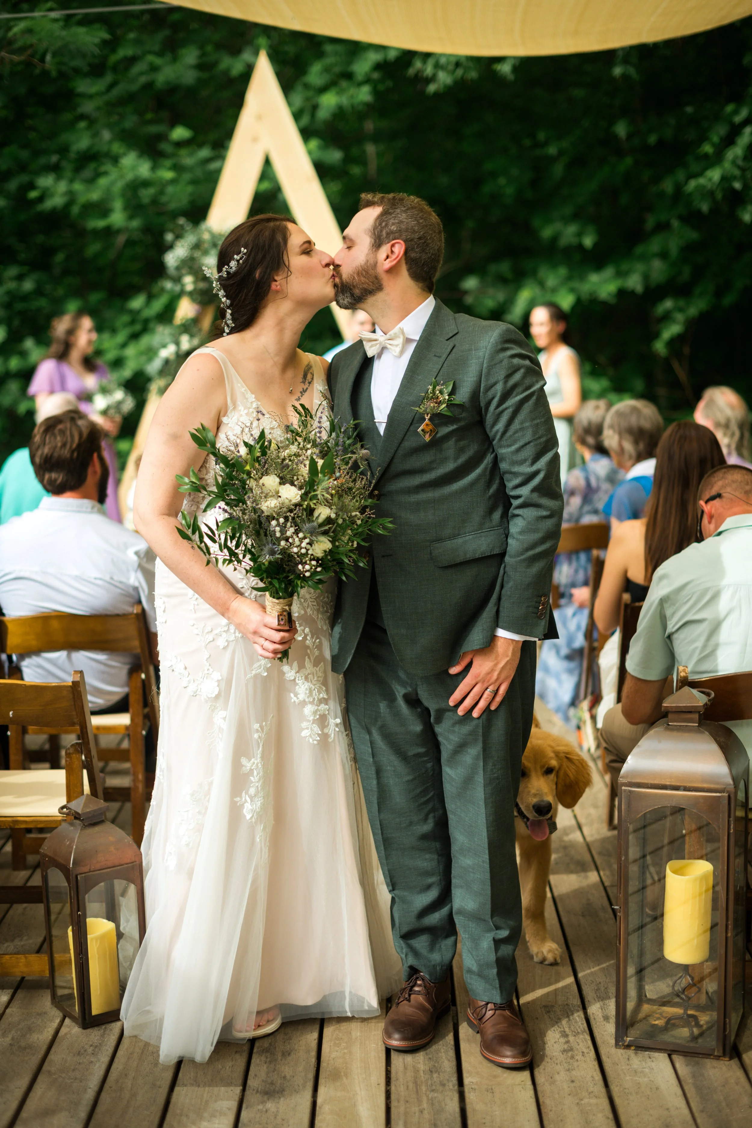 We bonded over our passion of traveling, the outdoors, and our love for our dogs. Leo, their golden retriever, was a part of every meeting, venue walkthrough, and was heavily involved in the wedding planning process. He quite literally left his stamp on every invitation they sent out, played a big role in the ceremony, and was basically the theme of their entire wedding as he was SO important to this sweet couple. We ended up moving forward with the venue, a beautiful Airbnb up in the mountains in Barnardsville, NC, because it’s where Leo seemed to beam with approval.