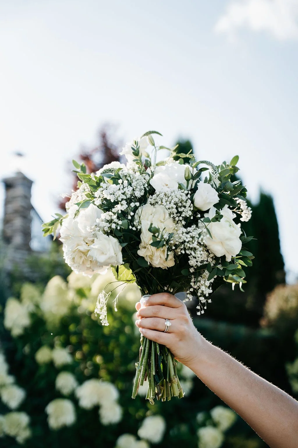 That is exactly what we got for this couple’s big day! Waiting until the last possible second to set up the ceremony and cocktail hour so that we can get the rain out of the way just in time for the ceremony to start. 10 minutes before guests were to sit down, we were frantically wiping off all the rain off the chairs and just like that, we had a stunning ceremony in the garden with the sun shining down on us.