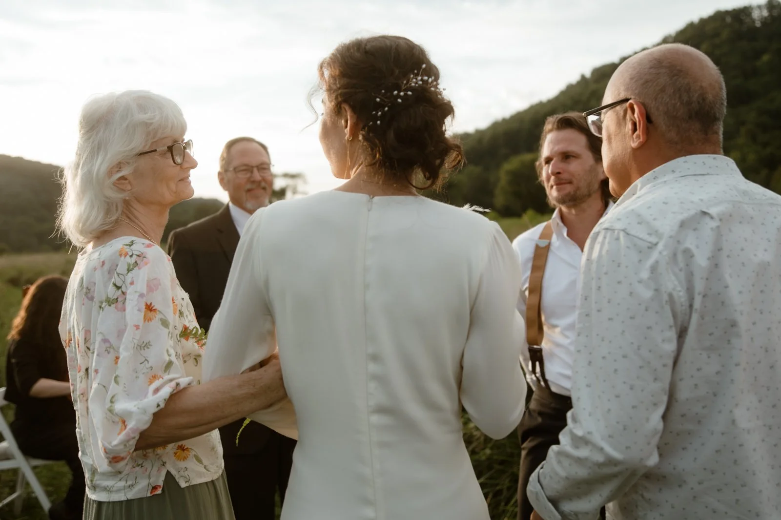 During the ceremony, we were surrounded by wildflowers, chirping crickets, and birds singing their last evening song before the sun dipped behind the mountains. It was one of those moments that was almost too beautiful to feel real. They read their personal vows to each other and there wasn’t a single dry eye at the end of the ceremony.