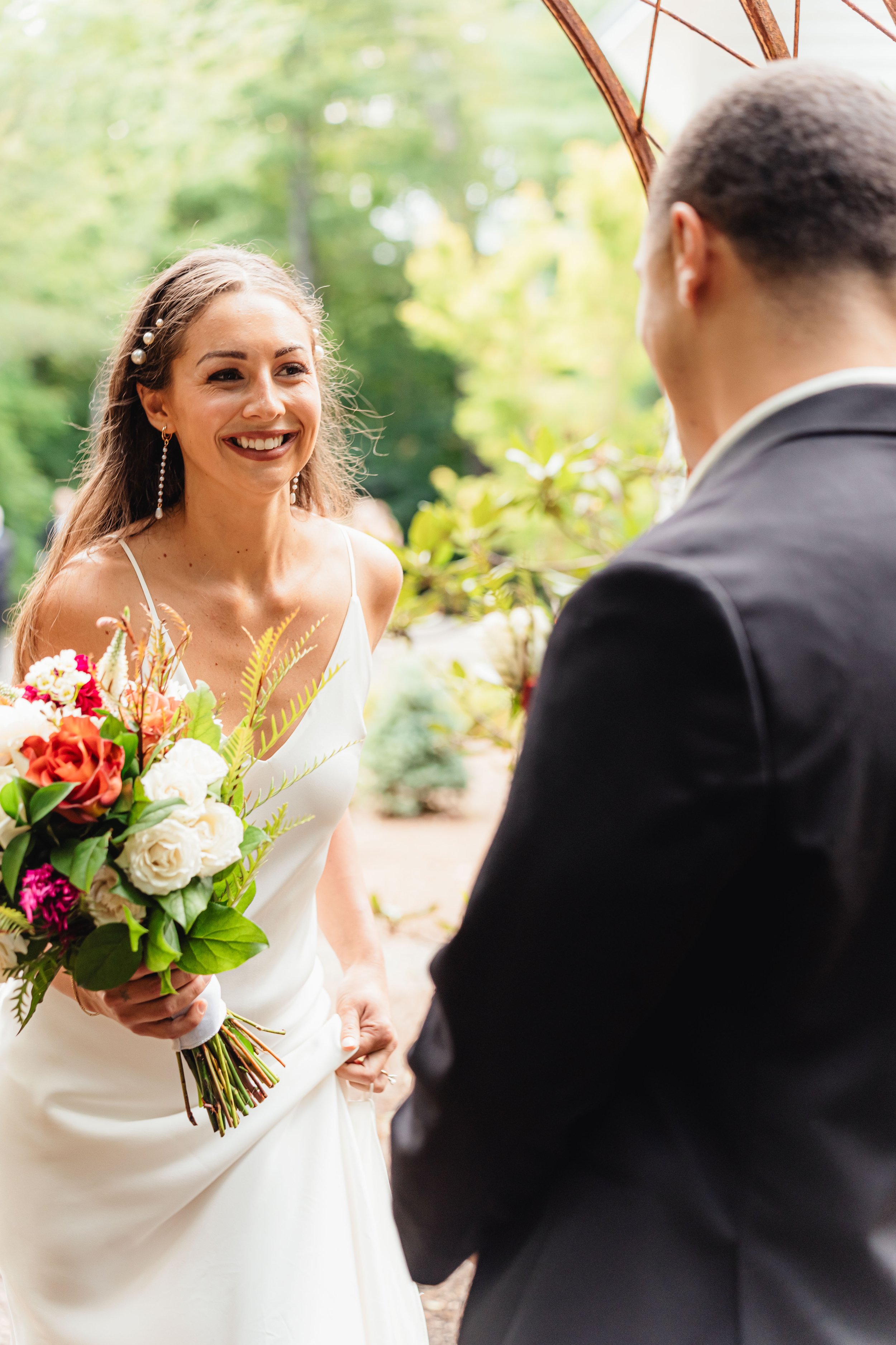 On the day of the wedding, I heard her in the bathroom laughing with her bridesmaids as she got dressed in her wedding gown as I was setting up the reception area. When she walked out of that bathroom, I literally gasped. She made the most STUNNING bride. She was glowing and radiant and absolutely beautiful.