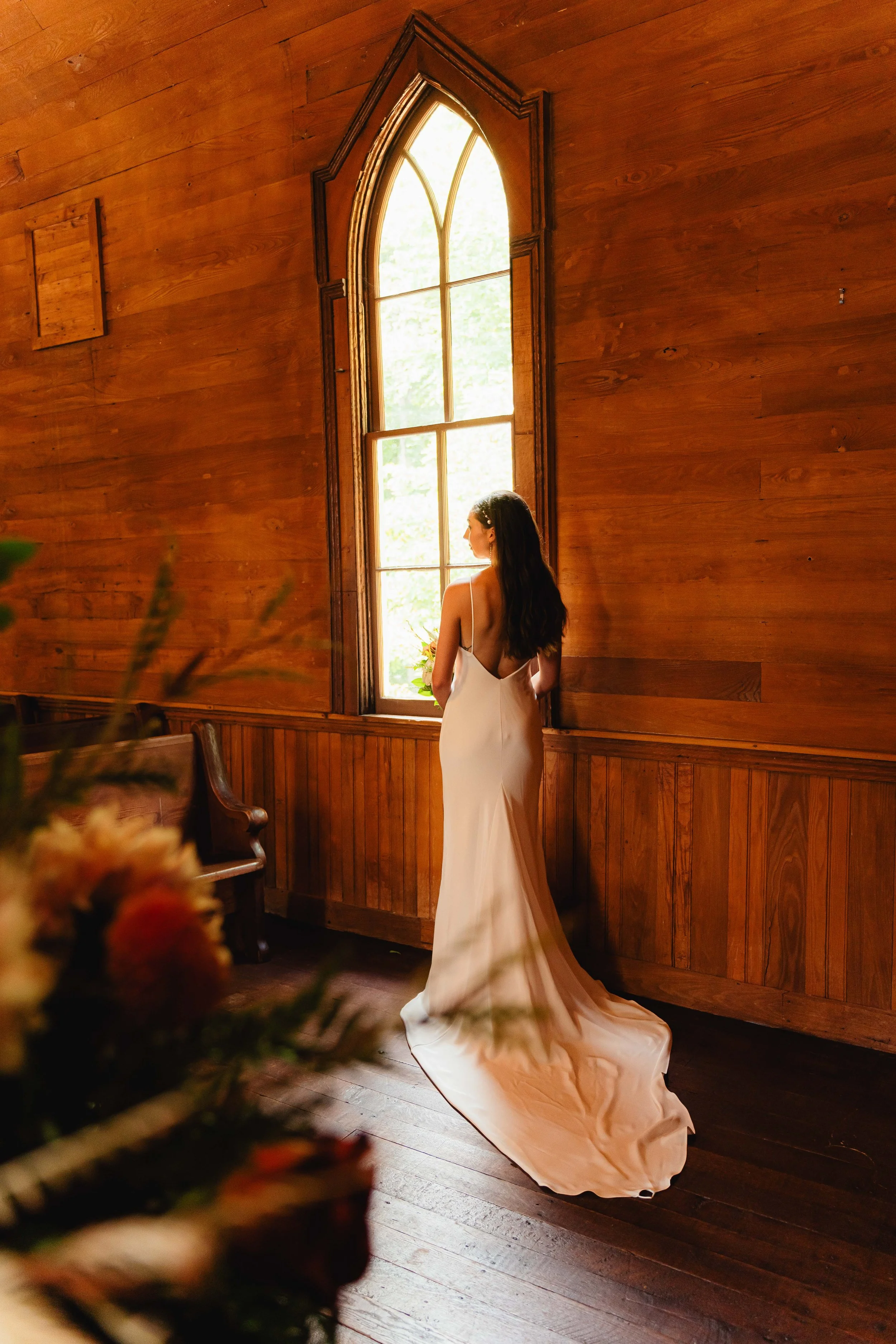 On the day before the rehearsal, we did a venue walkthrough together at the most incredible venue, Orion’s Schoolhouse and Chapel located in Jefferson, NC. The chapel has probably hosted thousands of weddings over the 110 years it’s been in existence. Then we toured the schoolhouse just hundred yards away which dates back to 1860. There are still carvings on the wall from the schoolchildren who used to attend this old historic school hundreds of years ago.